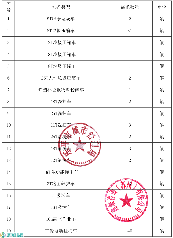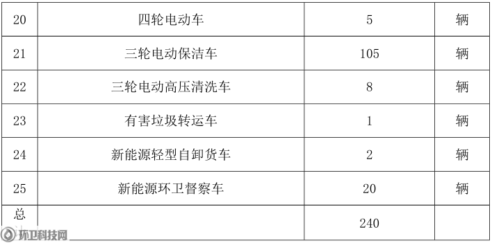 據(jù)悉,樂平市生活垃圾收轉(zhuǎn)運(yùn)和處理設(shè)備更新項(xiàng)目(一標(biāo)段)于11月21日招標(biāo),預(yù)算金額3330.0818萬元,采購各式大中小環(huán)衛(wèi)車合計(jì)240輛,包括廚余垃圾車、垃圾壓縮車、洗掃車、清洗車、抑塵車、吸污車、三輪電動環(huán)衛(wèi)車等,具體如下表所示: